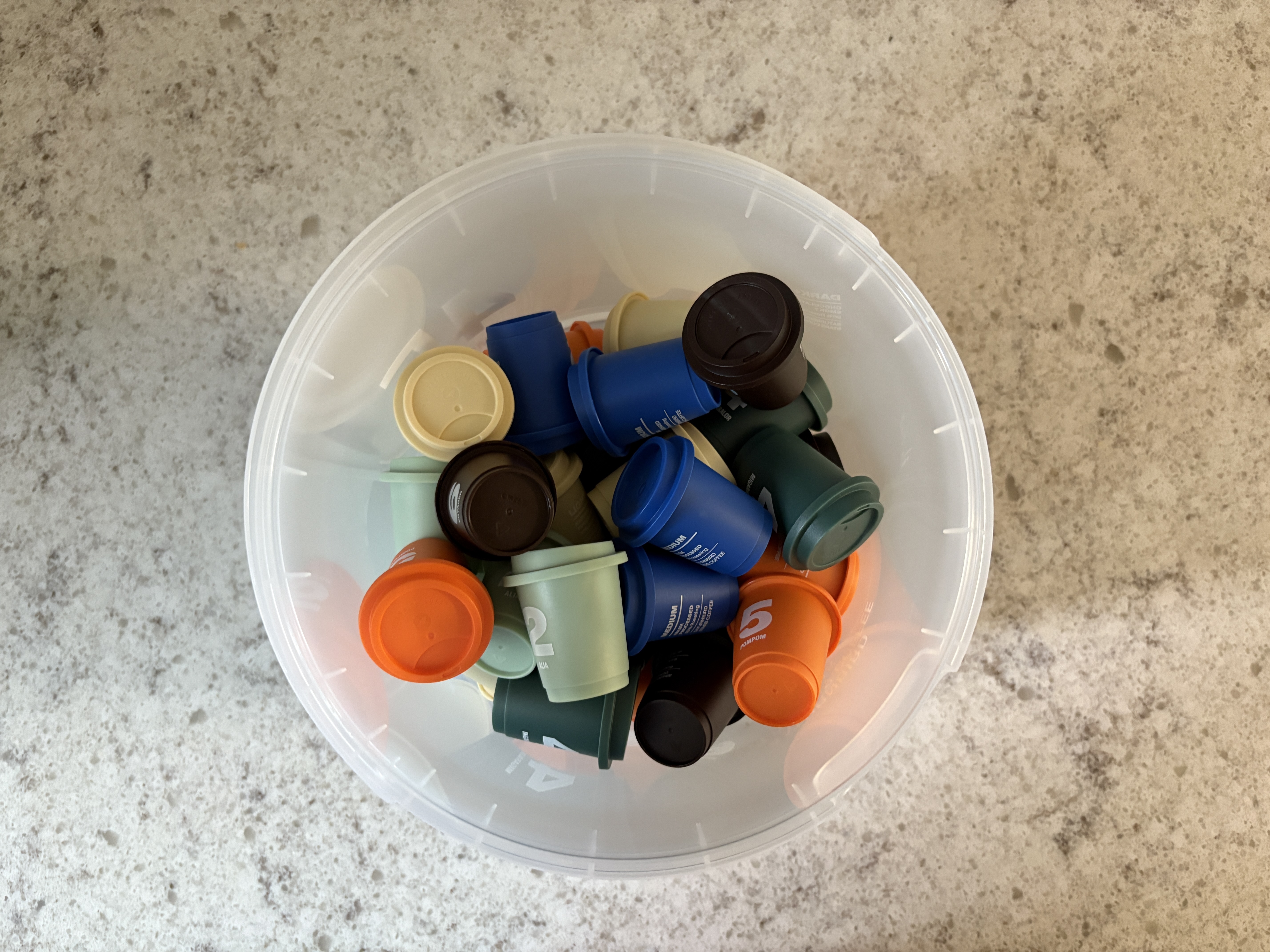 캡슐처럼 하나씩 통에서 꺼내 휴대하기도 편리하고, 혹시 작은 종이컵에 먹다가 남으면 미니컵 뚜겅을 닫아 놓으면 되니까 실용적이더라고요.