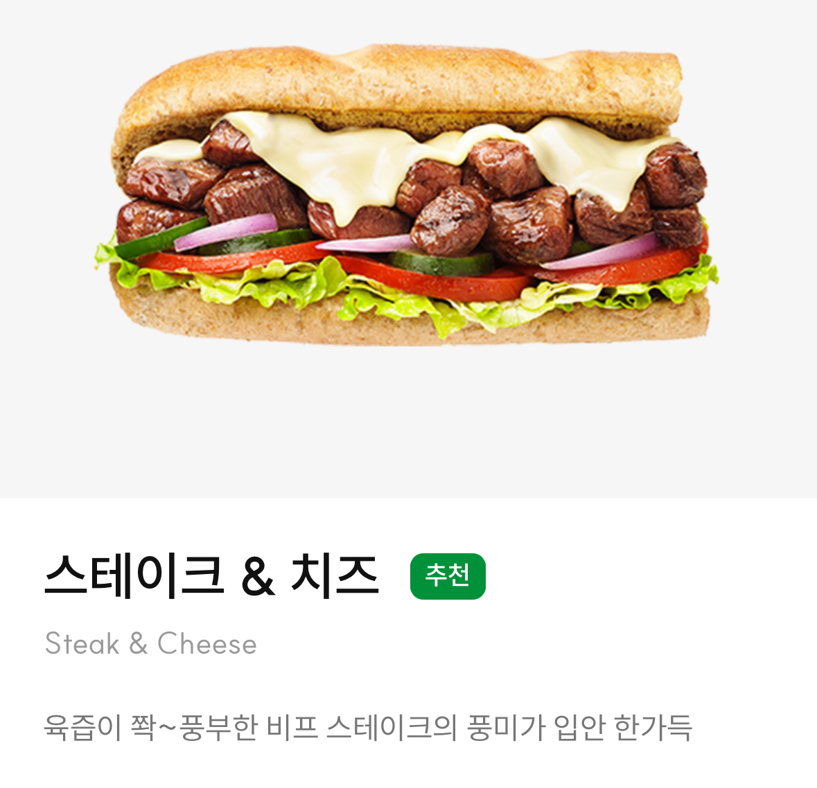 서브웨이가 처음이신 분들은 아메리칸 치즈를 추천드리고, 메뉴가 익숙해지셨을 때 모차렐라/슈레드 치즈로 변화를 주면 실패 확률이 낮집니다.