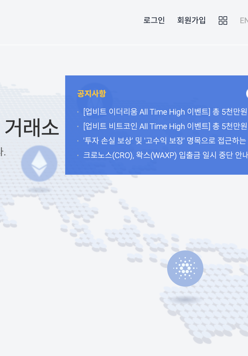 | KRW 마켓 | 원화 | 원화로 비트코인 등 코인을 직접 매수 |