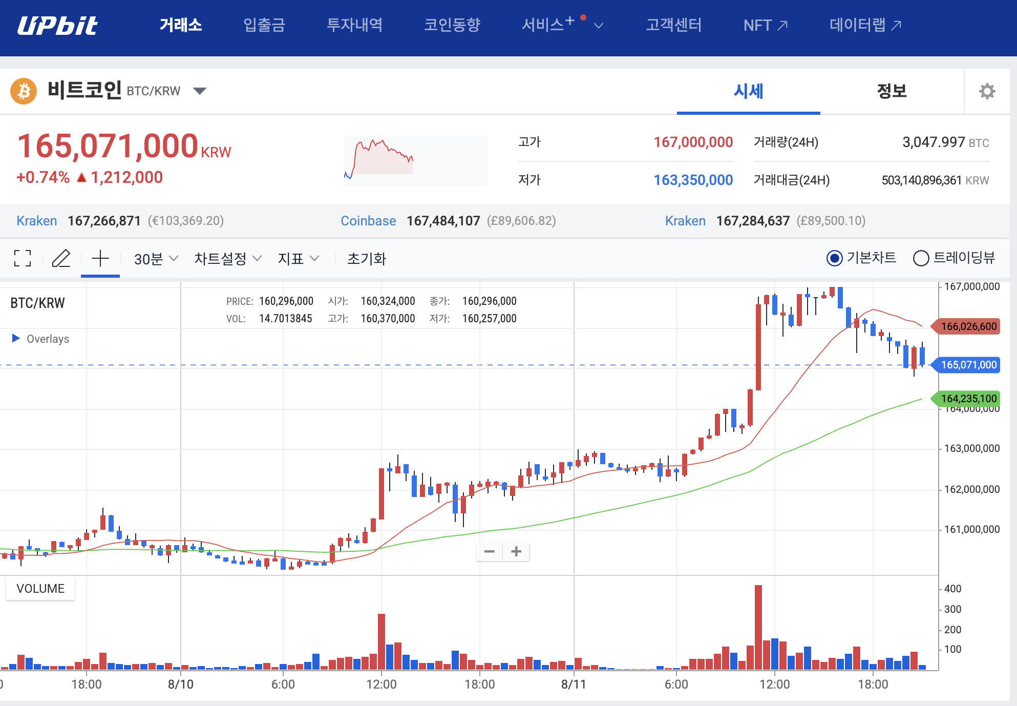 알트코인의 간판격인 이더리움(ETH)은 600만 원대에 근접했고, 비트코인은 1억 6천만 원을 넘어 사상 최고가 부근을 재차 시험하고 있습니다.